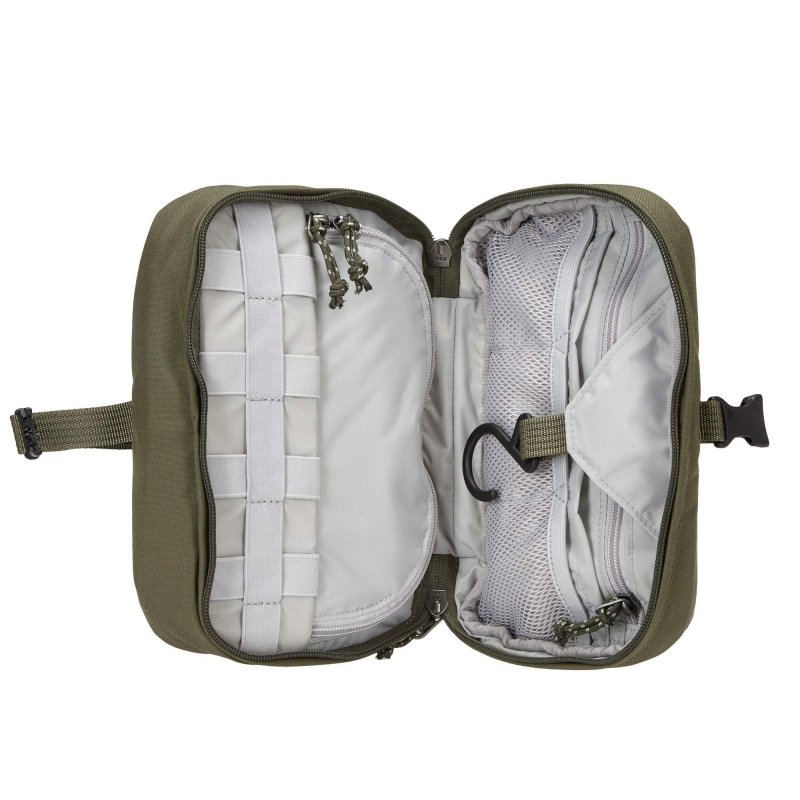 Die Kulturtasche lässt sich komplett aufklappen und wartet im Inneren mit zwei geräumigen RV-Fächern für Shampoo, Duschgel und Co. auf. In die Steckfächer passen Cremes und Zahnpasta. Für Kleinteile gibt es im unteren Bereich mehrere elastische Schlaufen. Außen- und Innenmaterial sind wasserabweisend beschichtet, sodass es der Färden Necessity Bag nichts ausmachst, wenn die Zahnbürste mal noch feucht eingepackt wird.