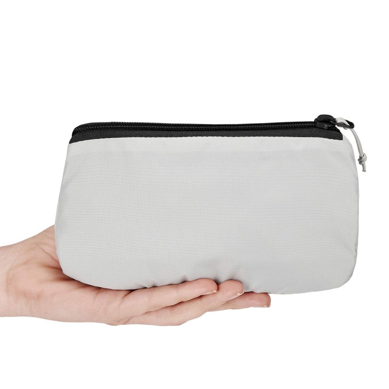 Lässt sich in sich selbst verpacken (Fach auf der Rückseite)