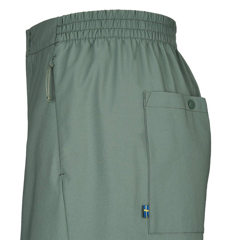 Die Shorts besteht aus einen schnell trocknenden Kunstfasermaterial, das schön stretchig ist und zu 70% aus recycelten Fasern besteht. Das federleichte Material sorgt dafür, dass Körperfeuchtigkeit von der Haut weg transportiert wird. Hervorragende Eigenschaften für Aktivitäten an den heißen Tagen des Jahres. Dazu kommen vier Taschen, in denen du ein paar Kleinigkeiten schnell erreichbar verstauen kannst.