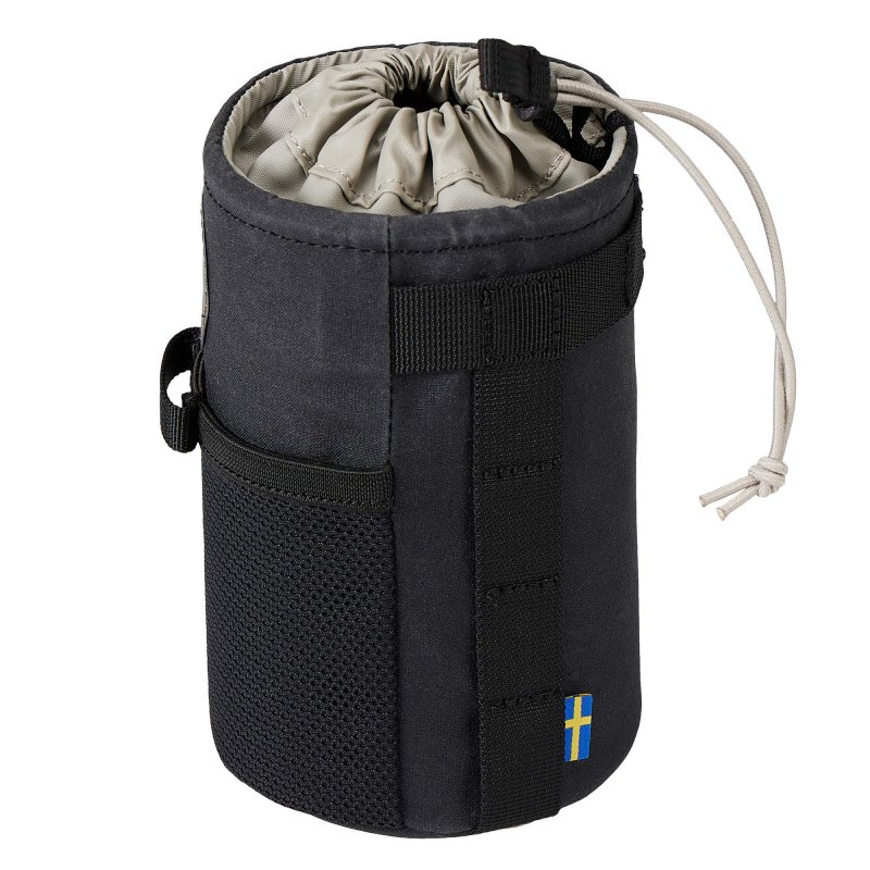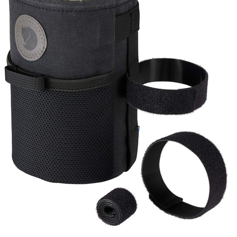 Die Hoja Snack Bag ist eigenstabil und hat eine Rundum-Polsterung. Der einhändig bedienbare Kordelzug oben hält den Inhalt auch in schwierigem Geläuf an Ort und Stelle. Die Hoja Snack Bag befestigst du mit bis zu drei Klettbändern an Vorbau und Lenker. Du kannst sie auch mit Gurtband an der Vorderseite des Hoja Handlebar Bag (optional erhältlich) fixieren. Eine kleine Mesh-Tasche außen nimmt einen Energieriegel oder anderes auf. Das verwendete Vinylon F ist strapazierfähig; der Futterstoff ist aus recyceltem Nylon gefertigt.