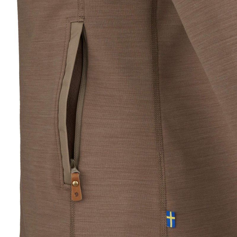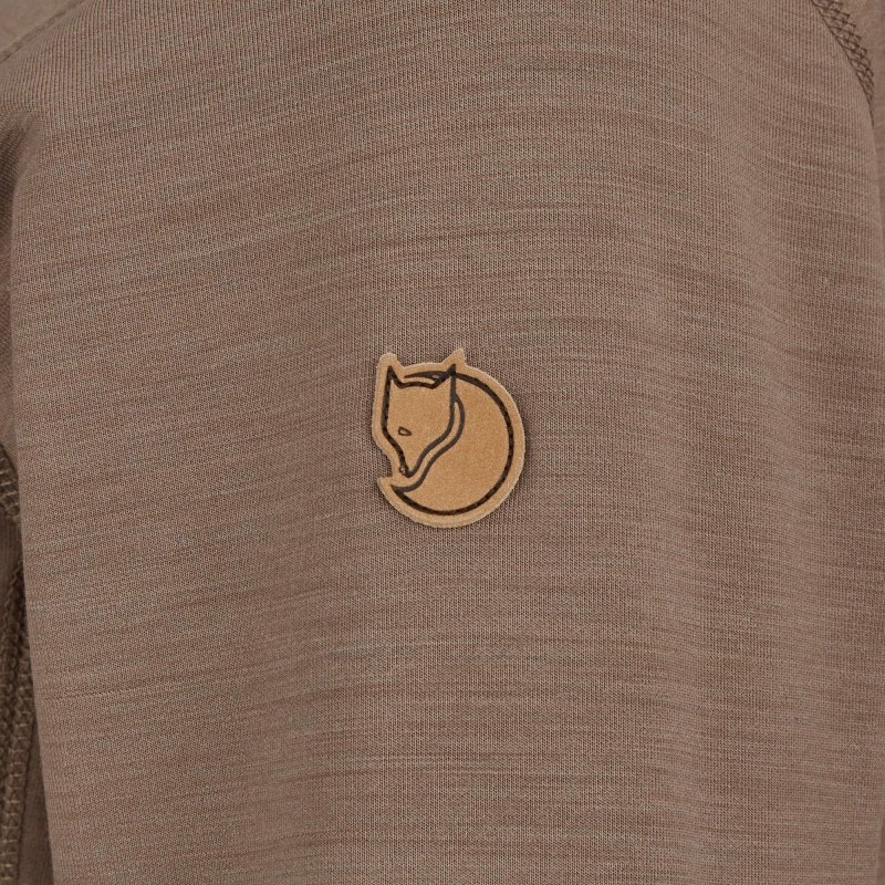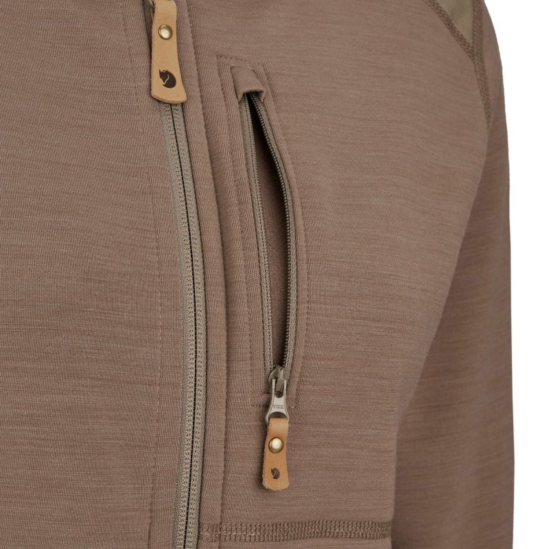 Das Material vereint die temperaturregulierenden Eigenschaften der Wolle mit dem guten Feuchtigkeitsmanagement und der schnellen Trocknungsdauer von Polyester und ist dank seines Elasthan-Anteils auch noch schön elastisch. Klingt nach einem tollen Material? Ist es auch. Die Außenseite ist glatt und robust, sodass die Fleecejacke auch hervorragend als wärmender Midlayer unter einer Außenjacke getragen werden kann. Die aufgebürstete Innenseite liegt herrlich weich auf der Haut.