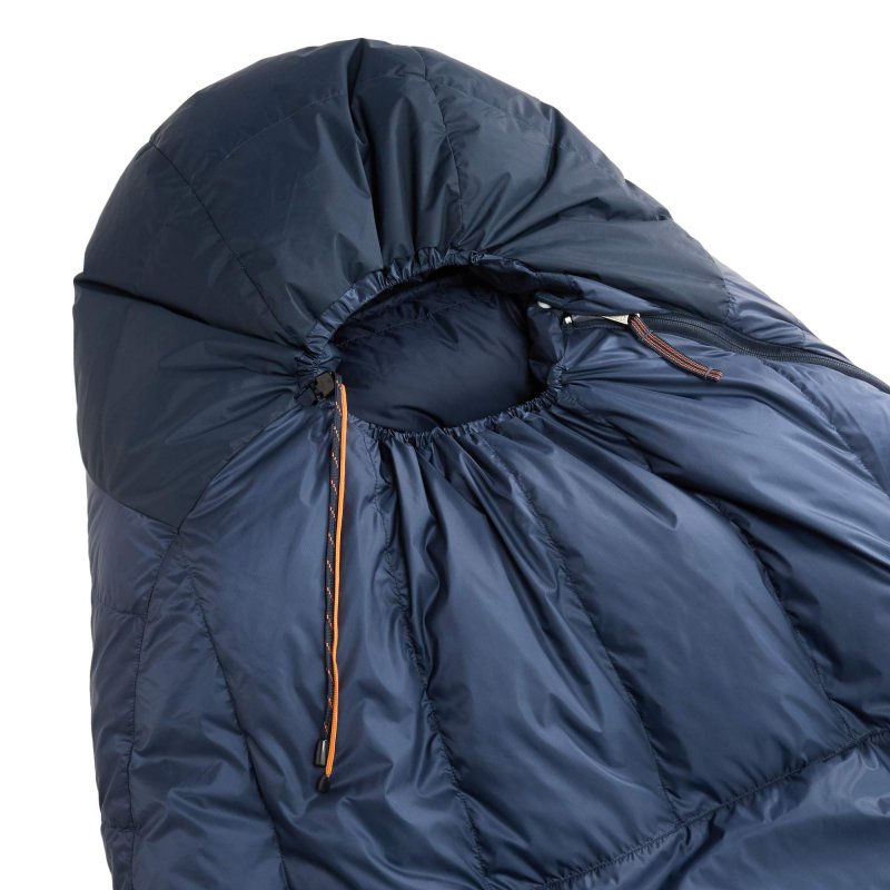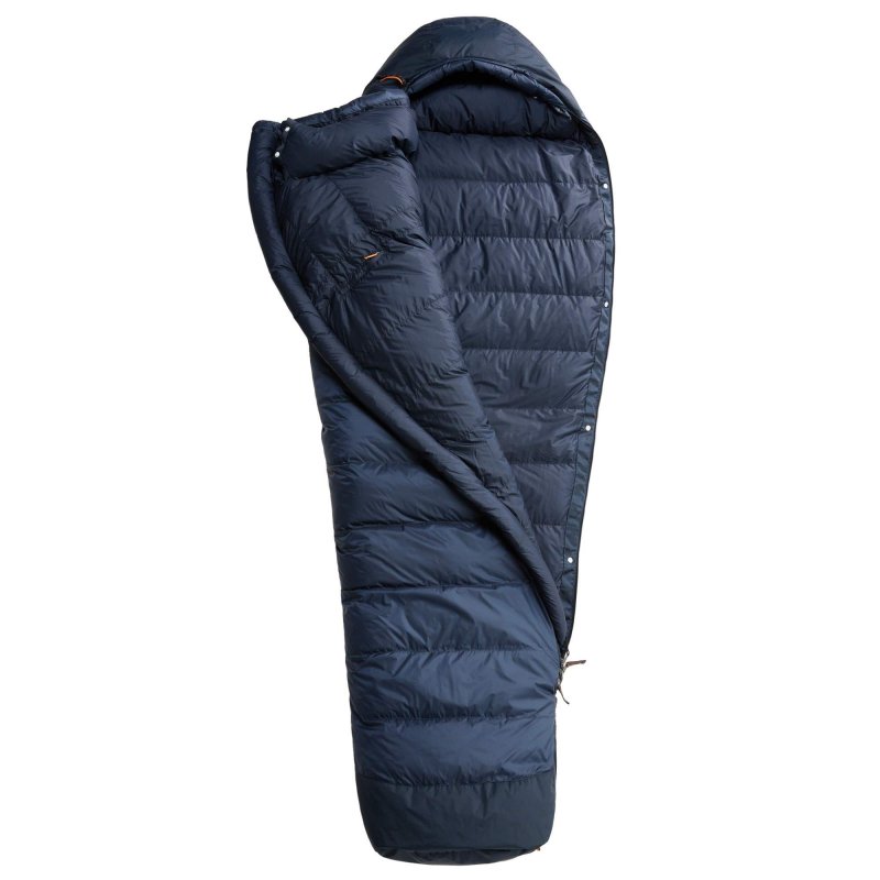 Drei-Jahreszeiten-Funktionsschlafsack aus Gänsedaunen mit optimalem Wärme-Gewichts-Verhältnis.