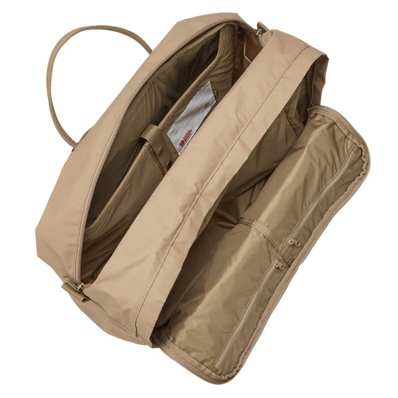 Die Kanken Weekender besteht aus Fjällrävens Vinylon F. Ähnlich wie eine Naturfaser quillt dieses Material auf, wenn es feucht wird. Dadurch wird das Gewebe wasserabweisend – und das ganz ohne Beschichtung. Dieser Effekt hält ein ganzes Kanken-Leben lang.