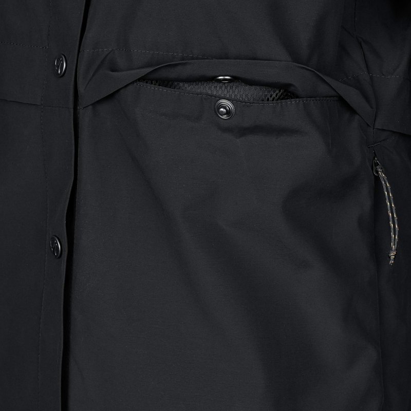 Auch die weiteren Details machen das S/F Rider's Wind Jacket W windsicher: Der hochknöpfbare Kragen sorgt für zusätzlichen Windschutz. Die vorgeformten Ärmel haben elastischen Bündchen, die Zugluft abhalten. Unter den Armen gibt es zudem Belüftungsöffnungen, die warme Luft aus dem Inneren des Windbreakers ableiten.