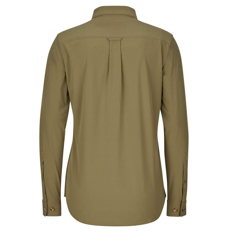 Der Schnitt des Hemdes ist etwas weiter und hat eine gute Passform. Dafür sorgt die Hemdfalte am Rücken. Die Ärmel lassen sich aufrollen und mit einem Knopf befestigen.