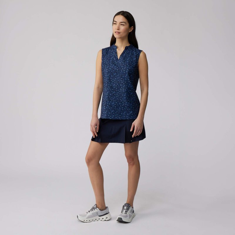 Das Shirt verfügt über ein glattes Stoffgefühl, pflegeleichtes Material und punktet mit seinem schnellen Feuchtigkeitstransport. Umweltbewusster ist es noch dazu denn knapp die Hälfte des Polyesters wurde recycelt. Durch den ärmellosen Schnitt bietet es dir zudem wohlige Luftigkeit bei sommerlichen Temperaturen. Der elegante Kragen, das hübsche Muster und der tiefe V-Ausschnitt runden das Ambae stilvoll ab.