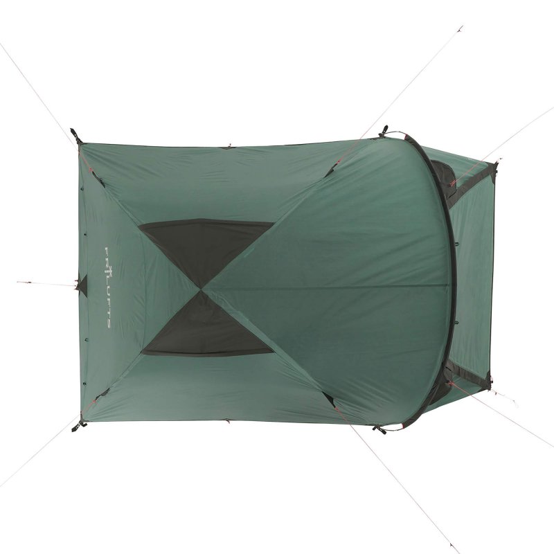 Viel Platz für bis zu 3 Personen durch die großzügige Innenzeltbreite. In der Apsis lassen sich Gepäck und Rucksäcke verstauen. Die Lüfter in Zelthimmel und Apsis sorgen bei warmen Temperaturen für optimale Luftzirkulation. Wem das im Sommer noch nicht reicht, der kann die Zeltrückwand im unteren Bereich über die komplette Länge nach oben wickeln, um für noch mehr Durchzug zu sorgen.