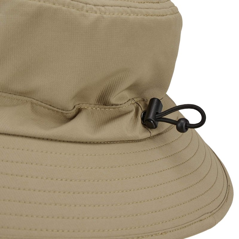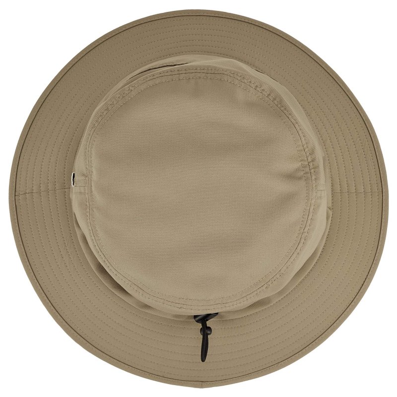Das Kunstfaser-Außenmaterial überzeugt mit schnellem Feuchtigkeitstransport und hohem Umweltbewusstsein, denn es ist komplett recycelt. Von innen sorgt das Netzfutter zusammen mit dem umlaufenden Schweißband für trockenen Tragekomfort. Die breite Krempe spendet rundum angenehmen Schatten. Und für optimalen Sitz kannst du die Weite per Schnürzug regulieren.