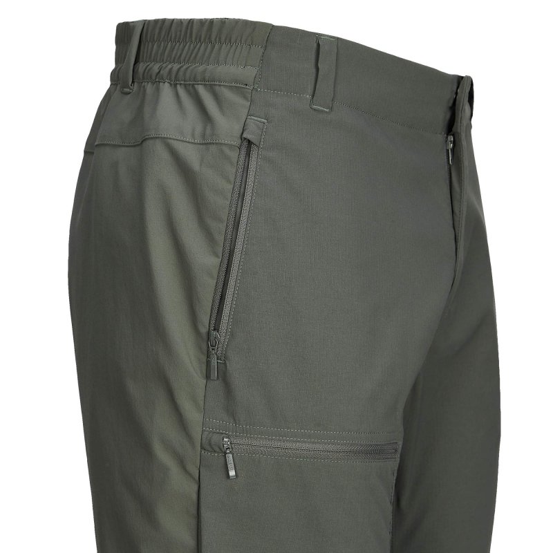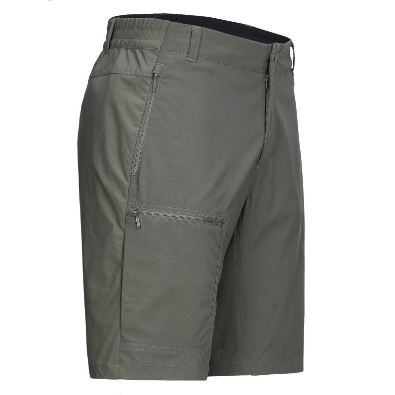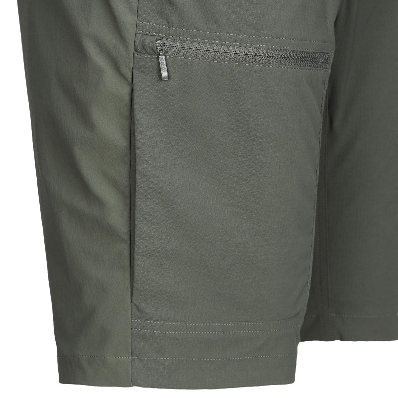 Dank Materialmix und -beschaffenheit ist die Hosby Bike Shorts leicht, angenehm elastisch, schnelltrocknend und auch windabweisend. Die beiden RV-Schubtaschen haben ein Netzfutter, welches zur guten Belüftung der Fahrrad-Shorts beiträgt. Zusätzlichen Stauraum bietet dir eine RV-Tasche auf dem Oberschenkel. Nettes, fahrradspezifisches Detail sind die reflektierenden Elemente, die zum Vorschein kommen, wenn du die beiden Hosenbeinsäume umschlägst. Perfekt, wenn du etwa in der Dämmerung auf deinem Fahrrad unterwegs bist. An der Hosenrückseite ist die Shorts mit einer DWR-Imprägnierung ausgerüstet; die sorgt dafür, dass etwa Spritzwasser vom Hinterrad abgehalten wird und die Fahrradhose nicht so schnell feucht wird. In Sachen Nachhaltigkeit ist die Hosby Bike Shorts ebenfalls gut aufgestellt: Ein sehr großer Anteil der Materialien ist recycelt.