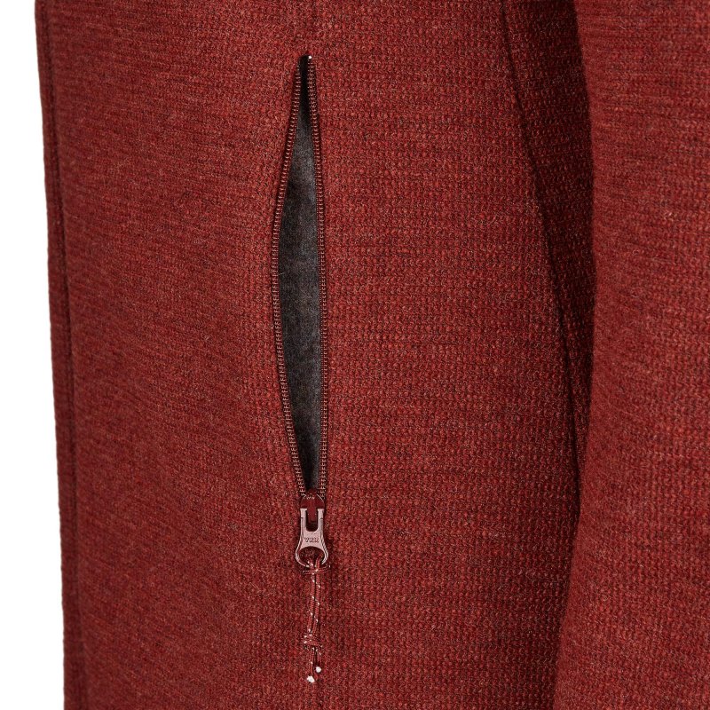 Die Außenseite ist aus einem schönen, robusten Strickfleece gefertigt. Das Fleece besteht aus einer Mischung aus Wolle und Kunstfaser. Die Wolle sorgt für ein angenehmes Trageklima, außerdem leitet sie Feuchtigkeit zügig ab. Die Kunstfaser macht das Gewebe strapazierfähiger und lässt es recht schnell trocknen. Auf der Innenseite sorgt eine Schicht aufgerautes Fleece für die nötige Wärme an kühlen Herbsttagen und kuschelweichen Tragekomfort.