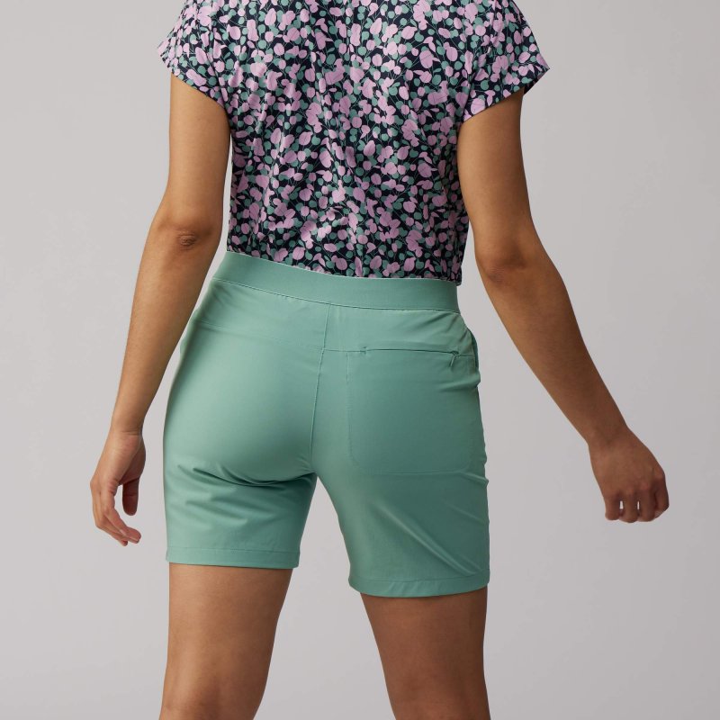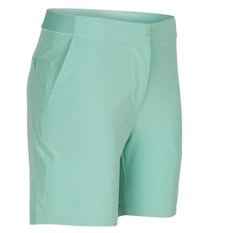 Durch ihr dünnes Material liegt die Shorts wunderbar leicht auf der Haut, was für Komfort auf Reisen und bei warmen Temperaturen sorgt. Zudem punktet sie mit schnellem Feuchtigkeitstransport. Hierfür ist das im Hauptmaterial enthaltene recycelte Polyester verantwortlich. Es sorgt dafür, dass die Kerasia im Handumdrehen trocknet, wenn es schweißtreibend wird. Durch eine gute Portion Elasthan ist das Gewebe zudem stark elastisch und macht Bewegungen flexibel mit.