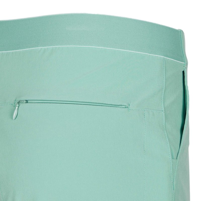 Für bequemen und sicheren Sitz ist der teilelastische Bund zuständig. Die beiden Einschubtaschen bieten Stauraum für kleinere Gegenstände. Die Taschen bestehen aus Mesh-Material, wodurch sie zusätzlich der Belüftung dienen. Für wertvollere Utensilien ist die Shorts mit einer RV-Gesäßtasche versehen. Und perfekt zum Verstauen im Gepäck weist die Kerasia neben ihrem geringen Gewicht (140g/Gr. 36) ein sehr kleines Packmaß auf.