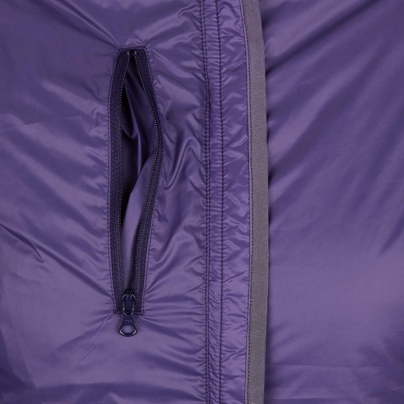 Das Innen- und das Außenmaterial bestehen aus komplett recyceltem Nylon. Das Material ist angenehm glatt und weich, dennoch aber sehr strapazierfähig. Dank wasserabweisender DWR-Ausrüstung durchnässt die Jacke nicht gleich, wenn du mal in einen kleinen Regenschauer gerätst. Die dünne Wattierung sorgt für leichten Kälteschutz, ohne aufzutragen. Das Material ist unempfindlich gegenüber Feuchtigkeit. So spendet die Kunstfaser-Füllung auch dann noch angenehme Wärme, wenn sie durch Schweiß oder starken Regen einmal feucht geworden ist.