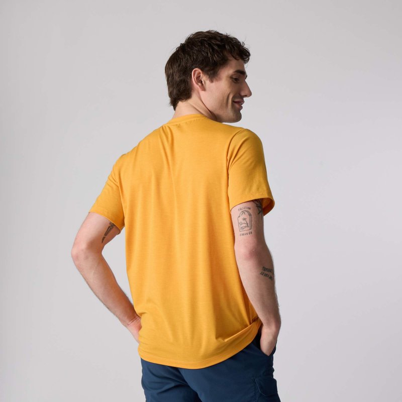 Das Shirt ist aus einer Mischung aus Polyester, Wolle und Elasthan gefertigt. Der Materialmix liegt angenehm weich auf der Haut und kann mit einem sehr guten Feuchtigkeitsmanagement punkten: Gerätst du auf herausfordernden Etappen ins Schwitzen, leitet das Material die Feuchtigkeit schnell nach außen hin ab und ist danach ratzfatz wieder trocken. Durch seinen klassischen, geraden Schnitt und das elastische Gewebe sind deiner Bewegungsfreiheit keine Grenzen gesetzt.