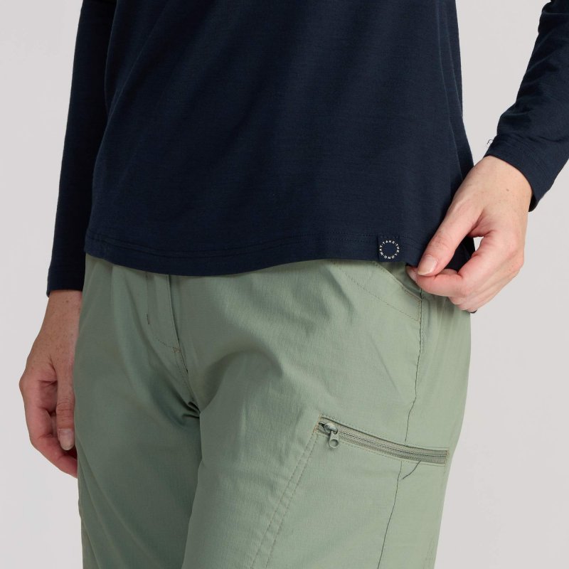 Dank seiner Mischung aus Lyocell und Merinowolle hat das Longsleeve einen super weichen Griff. Beide Materialien leiten entstehende Feuchtigkeit schnell von der Haut weg, so trägt sich das Shirt auch bei dynamischen Aktivitäten sehr angenehm. Der Elasthan-Anteil macht das Shirt stark dehnbar, sodass du dich immer frei bewegen kannst.