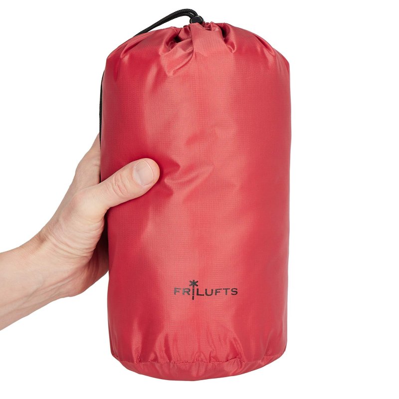 Geschlossen werden die Stuffbag Round mit Tunnelzug und Tanka. Das leichte, recycelte Material ist robust, leicht wasserabweisend und doppelt PU-beschichtet.