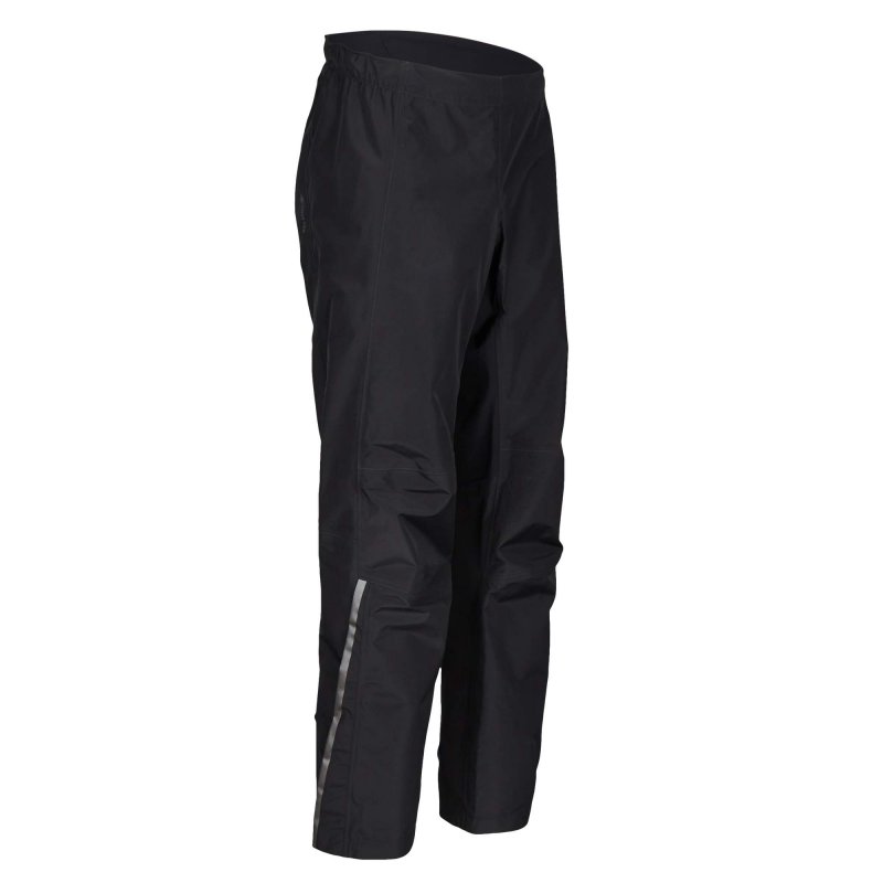 Die leichte und platzsparend packbare Regenhose ist für nasses Wetter geschaffen und kommt mit einem fahrradspezifischen Schnitt und dem „Guaranteed to keep you dry“-Versprechen. Am Gesäß und an der Innenseite der Oberschenkel hat die Fahrradhose eine Materialverstärkung aus Polyamid. Diese zieht sich fast bis zum Knie herunter. Die mit Klettverschluss verstellbare Unterschenkelweite verhindert, dass sich der Hosenstoff im Antriebsstrang verfängt.