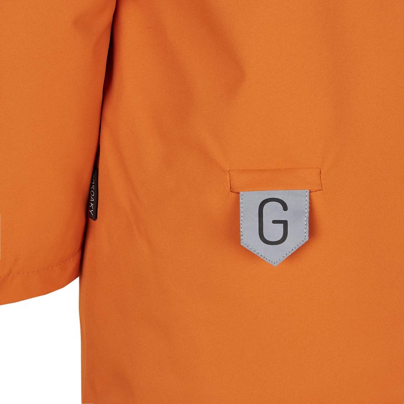 Durch die bequeme Passform und den V-förmigen Bewegungsschlitz hinten engt die Jacke trotz des langen Schnitts beim Toben nicht ein. Am Rücken befindet sich eine kleine Tasche mit einem reflektierenden Gosoaky-Schild. In der Dunkelheit kann das Schild hervorgeholt werden, ansonsten kann es auch einfach in der kleinen Tasche versteckt werden. Die Windschutzleiste, die abgedeckten Fronttaschen und die Ärmelbündchen mit Druckknopfverschluss verleihen der Jacke eine besonders schicke Optik. So kann sich die Jacke nicht nur beim Toben auf dem Schulhof oder auf dem Spielplatz, sondern auch bei der nächsten Familienfeier sehen lassen.