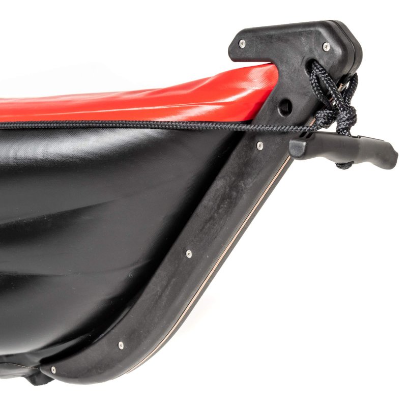 Die Steuervorrichtung des Escape 2 wurde überarbeitet. Der Steilstopper wird beim 2021er Modell direkt auf die hintere Rundum-Leine geknotet. Dort kommt er nicht mit dem Paddel in Konflikt und kann dauerhaft montiert bleiben. Dadurch entfallen die bisherigen Steuerseil-Fixierungsösen auf dem Verdeck.