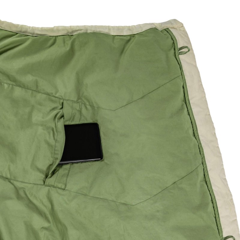 Praktisch: Ein Einschubfach in der Kapuze erlaut das Kissen rutschsicher unterzubringen oder einen Wollpullover einzuschieben, um ihn als Kopfkissen nutzen zu können.
