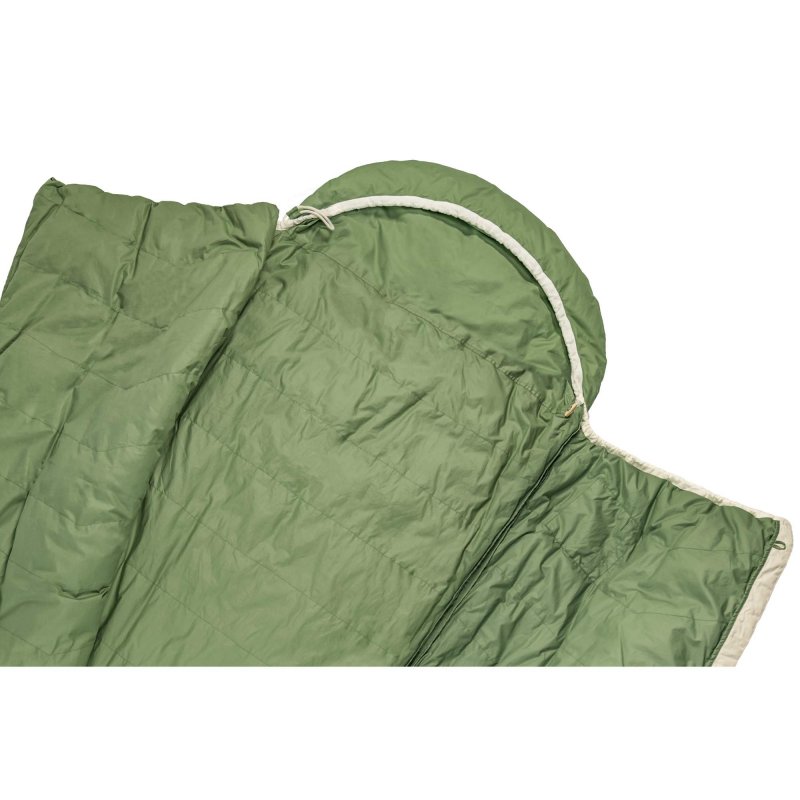 Statt eines Reißverschlusses werden beim Nature Comfort die beiden Seitenteile übergeschlagen und mit Holzknöpfen verschlossen. Dieses System hat den Vorteil, dass du den Schlafsack weit öffnen und als Decke verwenden kannst. Unter ihr haben zwei Personen bequem Platz, was den Schlafsack zu einem Top-Begleiter für den Van oder das Dachzelt macht. Die doppelreihigen Knöpfe bieten zudem die Möglichkeit den Schlafsack in der Weite zu verstellen.