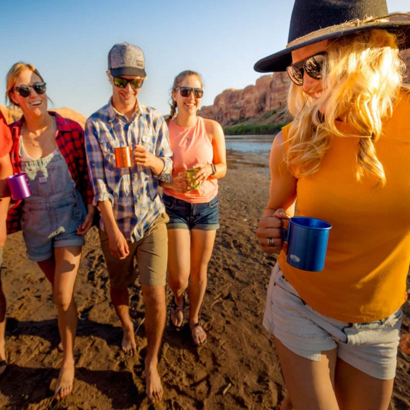 Im Bugaboo Campingbecher aus anodisertem Aluminium, kannst du nicht nur deinen Kaffee genießen, sondern dank der Volumenskalierung auch die Zutaten für dein Abendessen abmessen.