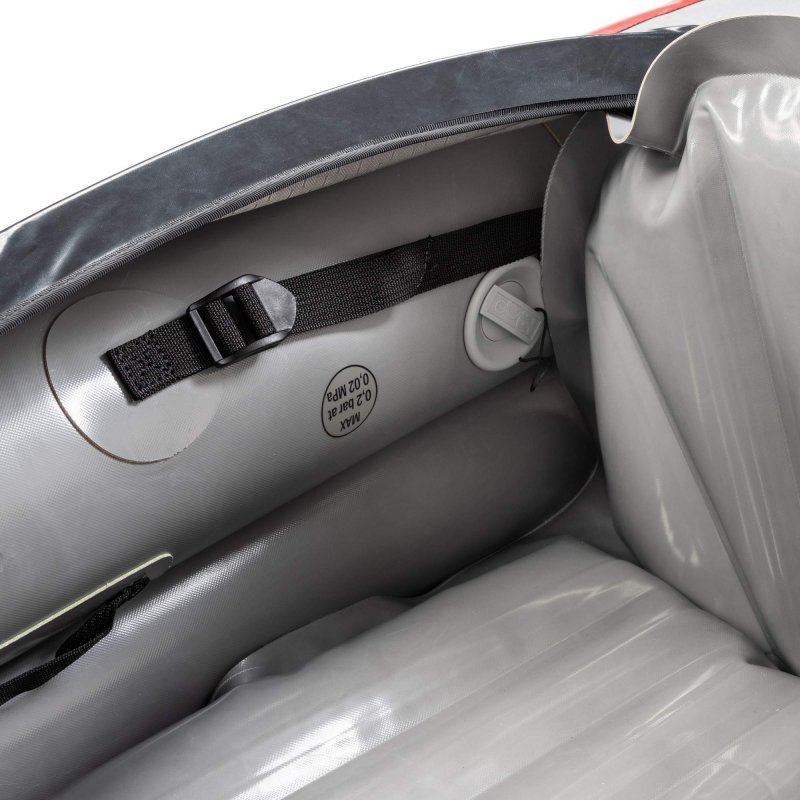 Im Bug und Heck ist viel Stauraum für Gepäck, welches durch das geschlossene Verdeck (nicht abnehmbar) sicher und geschützt verwahrt ist. Boden und Schläuche bestehen aus Gumtex’ bewährtem Nitrilon, einem äußerst beständigen und unempfindlichen Kautschuk-Material. Kräftige Verstärkungen sorgen für eine hohe Stabilität. Das Verdeck ist aus PU-beschichtetem Polyester gefertigt.