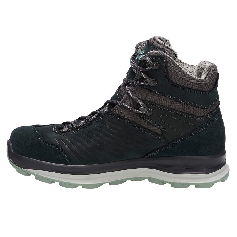 Als Obermaterial kommt ein Mix aus Velours- und Nubukleder sowie synthetischen Materialien zum Einsatz. Erstere Sorgen für die nötige Robustheit des tollen Winter-Wanderstiefels, letztere hingegen trotz der Wintertauglichkeit für ein verhältnismäßig geringes Gewicht. Im Zehen- und Fersenbereich ist der Stiefel sogar zusätzlich verstärkt. Das klassische Schnürsystem mit 3 Paaren Zughaken garantiert einen optimalen Sitz und verhindert auch, dass Schnee ins Innere des Stiefels gelangt.