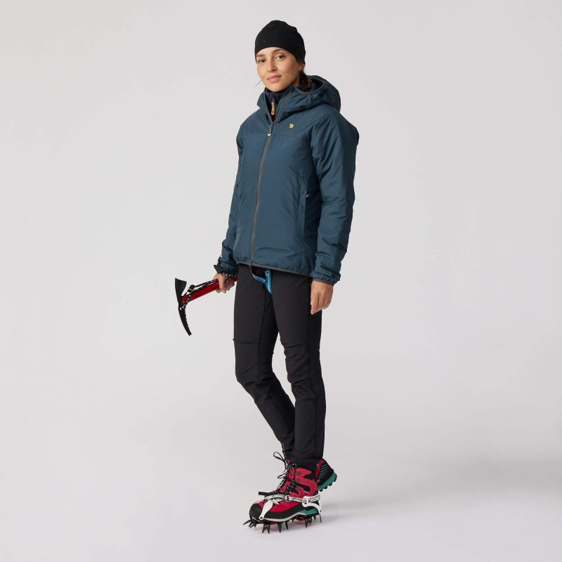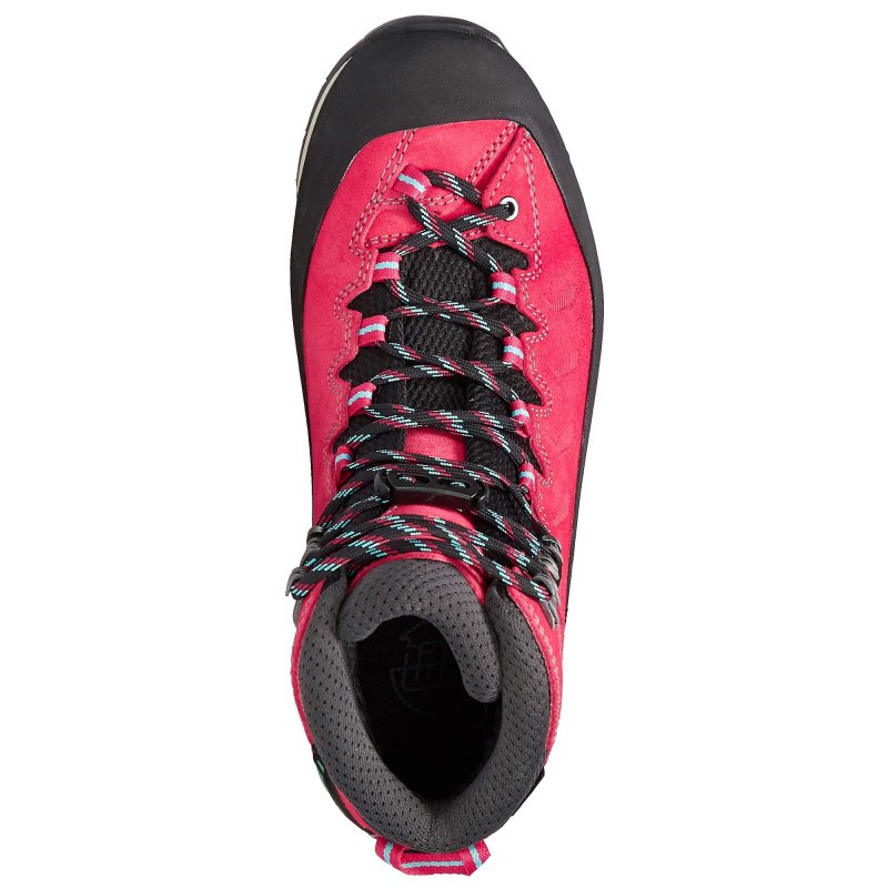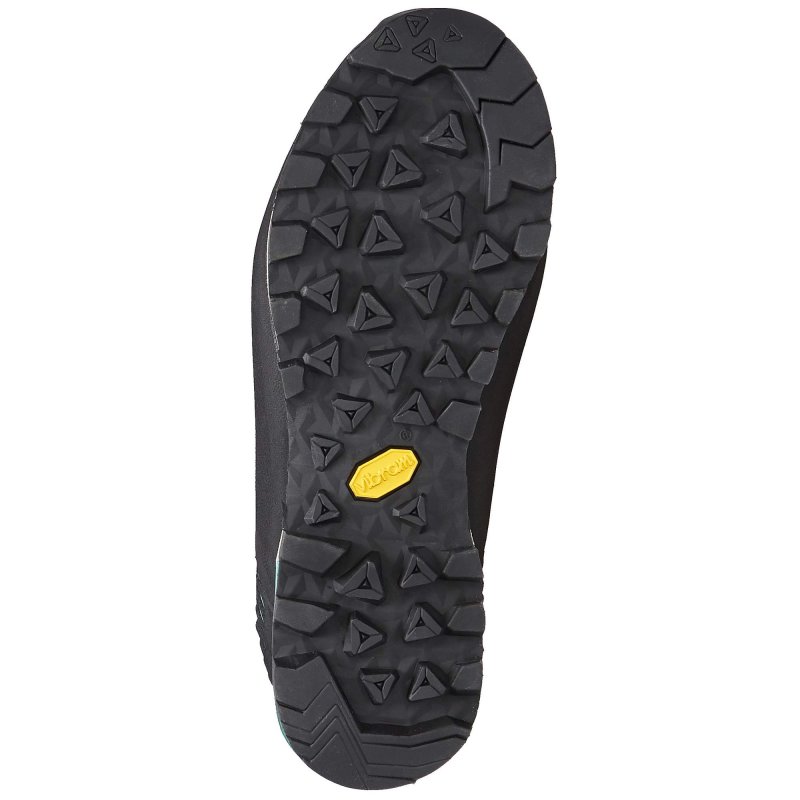Die Zwischensohle ist aus PU, TPU (Steigeisenauflage) und EVA gefertigt. Während im hinteren Bereich PU zum Einsatz kommt und für eine optimale Dämpfung sorgt, wird im Vorfußbereich auf EVA zurückgegriffen. Dadurch wird die Präzision im Antritt verbessert. Optimal in steilem Gelände, wenn dir lediglich schmale Tritte zur Verfügung stehen.