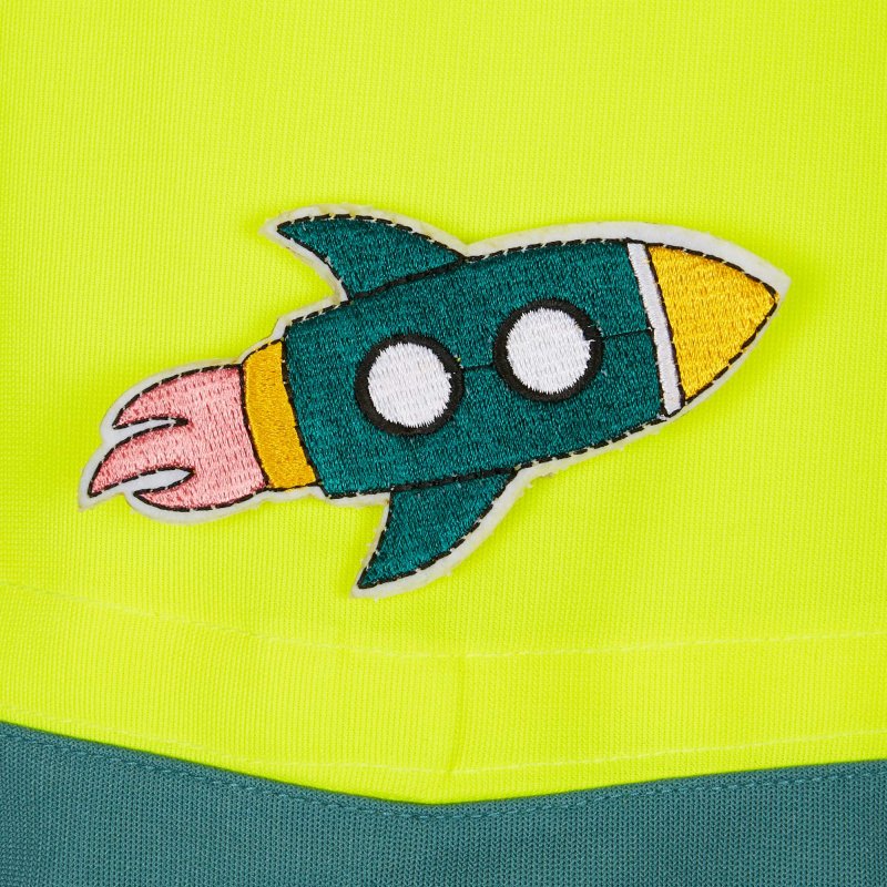 Praktisch: Das Cape ist waschbar, wenn du den Akku vorab herausnimmst. Passt fast immer und ist fix angezogen: Dein Kind kann das High Visibility Cape sowohl über einer Jacke als auch ohne eine Jacke tragen. Rakete, Regenbogen und Co. lassen sich übrigens abnehmen und tauschen. Diese hübschen Patches sind mit Klett ausgestattet.