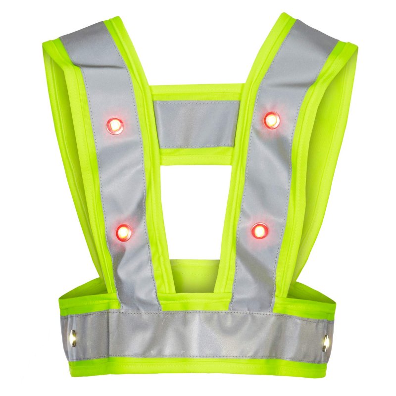 Sichtbarkeit der nächsten Stufe: Diese Fahrradweste wirft auftreffendes Licht nicht nur zurück, sondern leuchtet auch noch selbst! Die eingebauten Leuchtdioden machen es möglich.