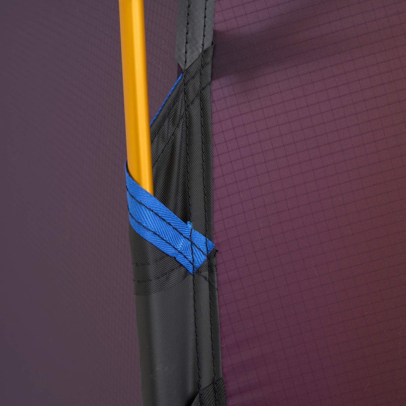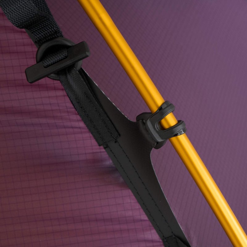 Alle drei Gestängebögen werden mit Clips am Außenzelt befestigt, was die Aufbaugeschwindigkeit erheblich erhöht. Die Featherlite-Gestänge sind gleich lang und kreuzen sich in der Kuppel, wodurch du keine Zeit mit der Suche nach der richtigen Stange verlierst. Das Innenzelt kann eingehängt bleiben und wird dadurch gleichzeitig mit dem Außenzelt aufgestellt. Bei Regen steht dir somit immer ein trockener Innenraum zur Verfügung.