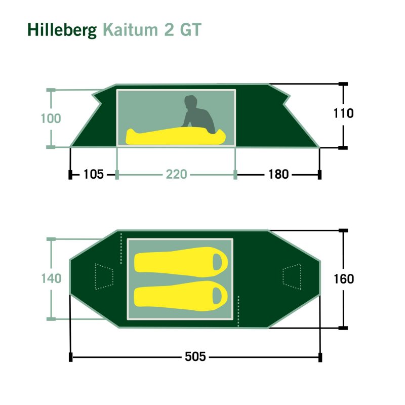 Die kürzeren, äußeren Gestängebögen geben dem Kaitum GT seine beidseitig abfallende und damit sehr windstabile Form. Außerdem sorgen sie dafür, dass das Gewicht im Vergleich zu gerade geschnittenen Varianten reduziert wird. Das Kaitum GT bietet eine sehr gute Kombination aus Komfort, niedrigem Gewicht, Stabilität und kleinem Packmaß. So sind Touren rund ums Jahr und bei fast allen Wetterlagen möglich.