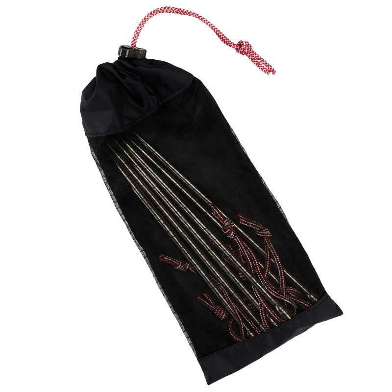 Hergestellt aus massivem Titan. Der superleichte Stinger kann ohne Probleme selbst in härteste Böden geschlagen werden und lässt sich dank der vormontierten Schlaufe einfach wieder herauszuziehen.