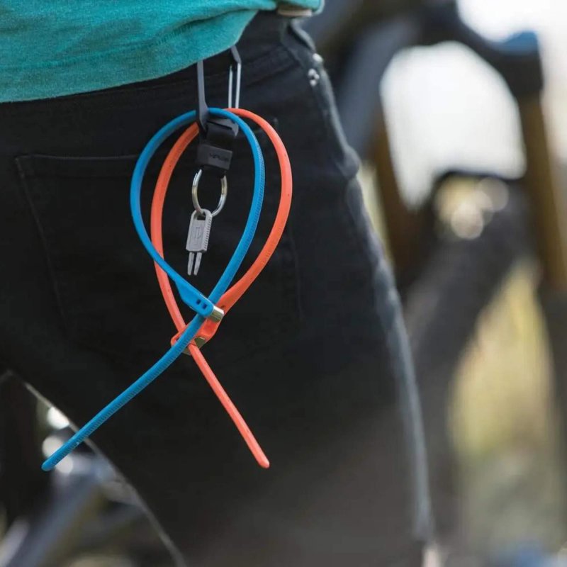 Das Z Lok ist für solche Gelegenheiten, bei denen du dein Gravel Bike, Rennrad oder MTB kurz sichern möchtest, genau das richtige Schloss. Es ist leicht und erinnert im Aufbau stark an einen großen Kabelbinder. Das Ratschenprinzip ist dasselbe: Zuziehen und fest. Allerdings ist das Z Lok stahlverstärkt und damit nicht so einfach zu überwinden. Und es lässt sich mit dem mitgelieferten Universalschlüssel fix wieder öffnen. Für das gelegentliche kurze Anschließen also unschlagbar praktisch.