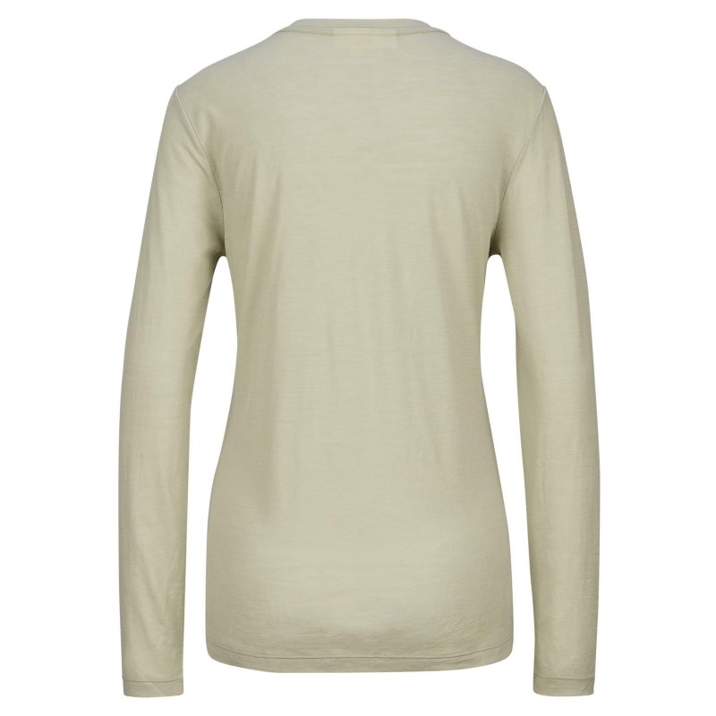 Gefertigt aus reiner Merinowolle liegt das Langarmshirt angenehm weich auf der Haut. Zudem sorgt die Wolle durch die temperaturregulierende Eigenschaft dafür, dass du weder überhitzt noch auskühlst. Noch dazu nimmt die Naturfaser viel Feuchtigkeit auf, ohne sich nass anzufühlen, und hemmt unangenehme Gerüche. Perfekt, wenn es anspruchsvoller zugeht, ob beim Wandern oder Skifahren. Für Komfort sind außerdem die versetzten Schulternähte zuständig.