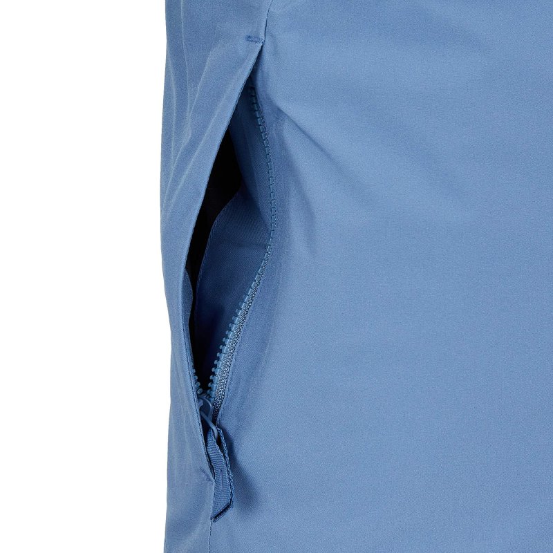 Die teilelastische Kapuze ist ruckzuck auf dem Kopf und auch die Ärmel bleiben dank Elastikeinfassungen an Ort und Stelle. Damit kalter Wind draußen bleibt, ist der Saum mit einem Schnürzug ausgestattet. Insgesamt drei Reißverschlusstaschen bieten Platz für Taschentücher, Kastanien und das Smartphone.