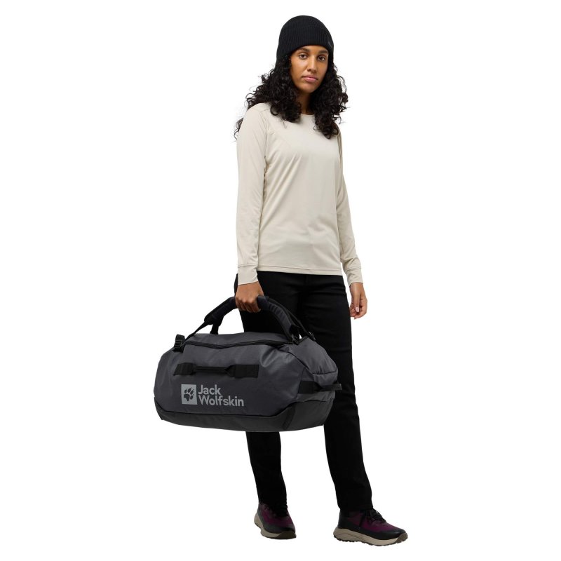 Hergestellt aus strapazierfähigem, wasserabweisendem und abriebfestem Cross Rip 300D Recycling-Polyester, ist die ALL-IN DUFFLE 45 bereit für weltweite Abenteuer. Sie ist PFC- und PVC-frei, GRS- und bluesign®-zertifiziert und aus beidseitig beschichtetem Material, um einem Regenschauer Stand zu halten. Die abnehmbaren Schultergurte bieten zahlreiche Trageoptionen. Sie kann zudem in dem mitgelieferten Packsack verstaut werden.