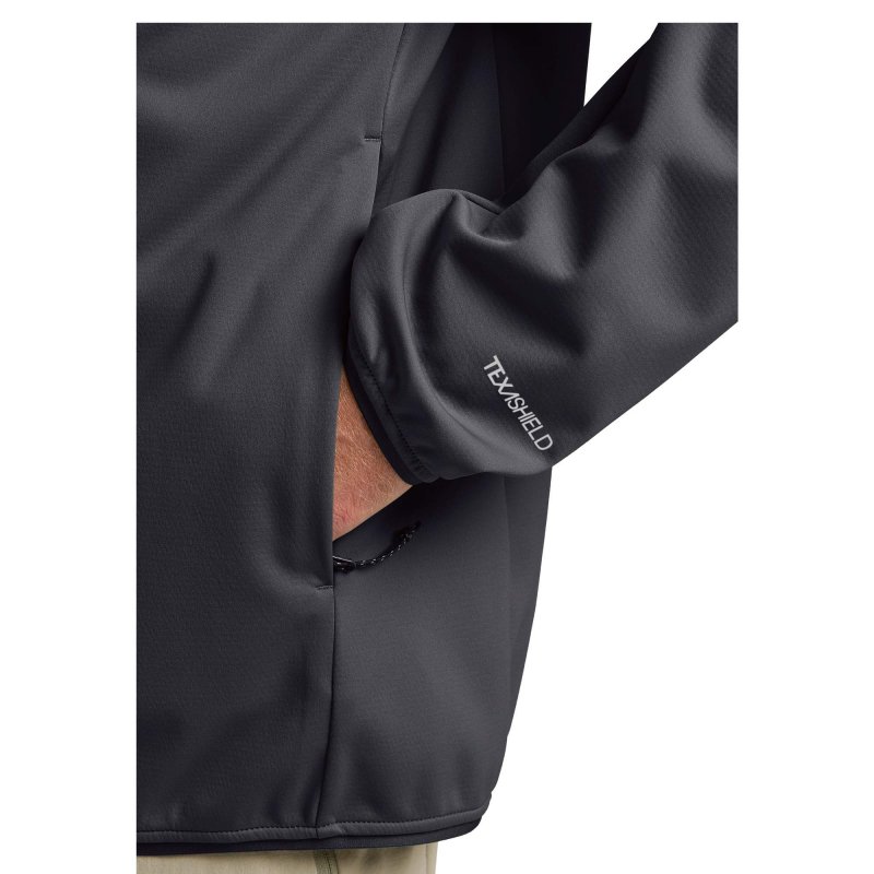 Bei der Feldberg Hoody M treffen recyceltes Material und eine wetterabweisende Ausstattung aufeinander. Mit der Softshelljacke geht es so auf Wanderung oder durch den Arbeitsalltag.