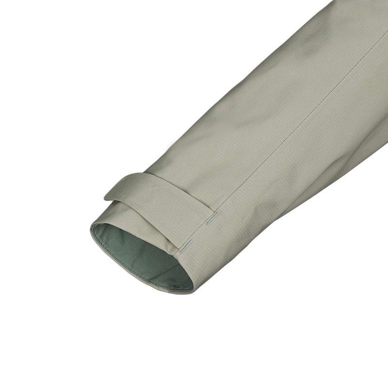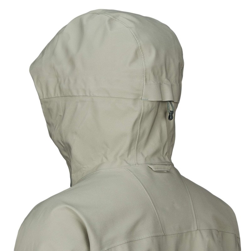 Die Regenjacke ist mit einem hohen Stehkragen und einer regulierbaren Kapuze ausgestattet, welche dir zusätzliche Schutz vor den Elementen bieten. Die beiden Reißverschlusstaschen auf der Brust sind extra höher angebracht, damit du sie auch mit einem Rucksack auf den Schultern problemlos erreichen kannst. Für einen guten Sitz lassen sich die Ärmelbündchen und der Saum individuell einstellen.