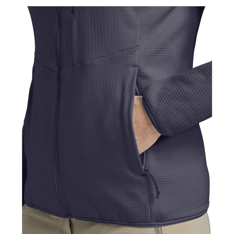 Die Fleecejacke besteht aus einem pflegeleichten Kunstfasermix. Das recycelte Polyester wird hier durch eine gute Portion Elasthan ergänzt. So kann die Jacke dir sowohl eine Menge Bewegungsfreiheit schenken als auch mit einem effizienten Feuchtigkeitsmanagement aufwarten. Dieses wird durch die Waffelstruktur des Innenfutters noch verbessert. Schweißtreibende Aufstiege oder temporeiche Laufrunden sind also kein Problem.