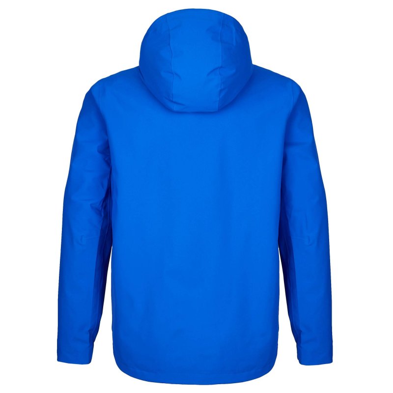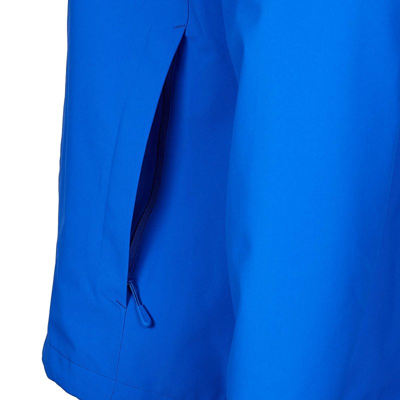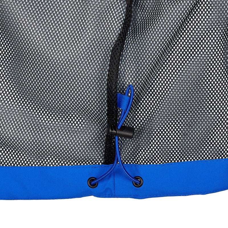 Zur Ausstattung gehört eine Kapuze, welche sich vorn mithilfe eines Schnürzugs regulieren lässt. Hinten ist sie mit einem Klettverschluss bestückt. Sie lässt sich außerdem im hohen, mit weichem Mikrofleece versehenen Kragen verstauen, wenn du sie gerade nicht benötigst. Den Saum kannst du per Schnürzug deinen Bedürfnissen anpassen, während sich die Ärmelabschlüsse durch Klett einstellen lassen. Abgerundet wird die Regenjacke durch zwei abgedeckte Reißverschlusstaschen.
