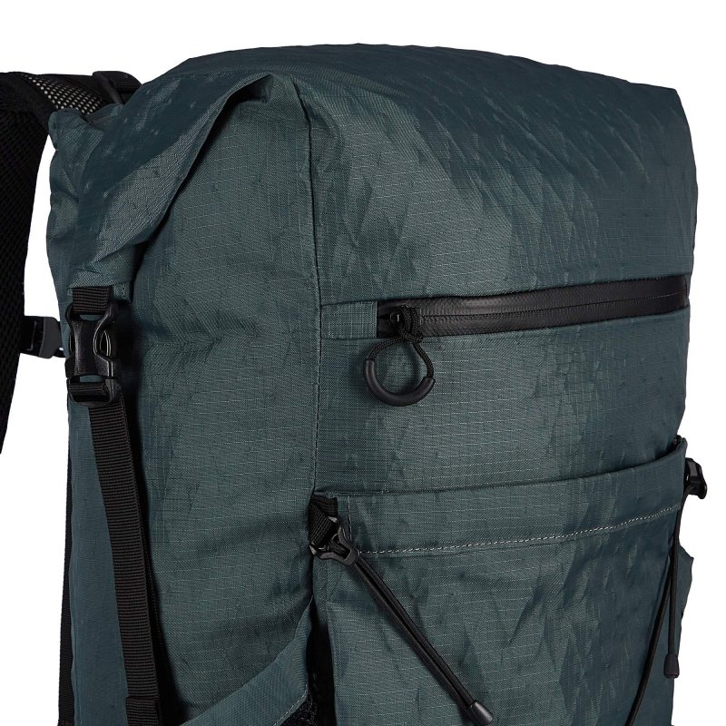 Der gepolsterte Kontaktrücken des Wandermood Rolltop 30 liegt körpernah und bequem auf. Dank der Belüftungskanäle kann die Luft bei schweißtreibenden Passagen gut zirkulieren. Ein Hingucker ist das dezente Rautendesign, das das strapazierfähige Ripstop-Material ziert.