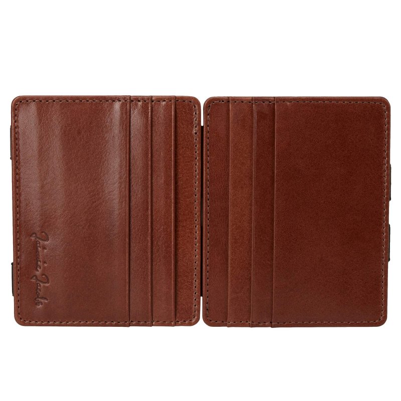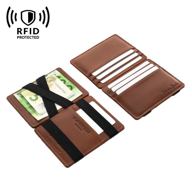 Das Flap Boy Slim Magic Wallet ist die kompakte Version der Flap Boy-Reihe. Es besitzt kein Münzfach, dafür aber umso mehr Platz für Karten. Geldscheine werden auf magische Weise befestigt.