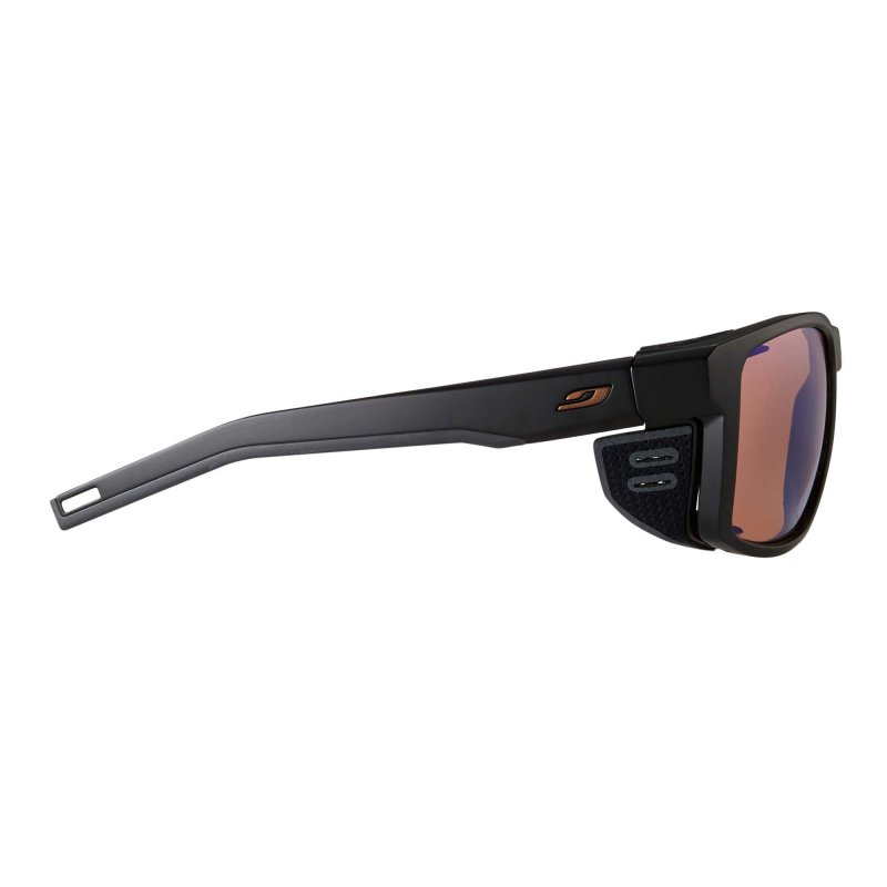 Abnehmbare, textile und weiche Seitenteile schützen dich vor seitlich einfallendem, grellem Licht. Die Soft Shield-Seitenteile sitzen sowohl oberhalb als auch unerthalb des Bügels. Der Rahmen der Shield L hat außerdem eine wirkungsvolle, in den Rahmen integrierte Air Flow-Belüftung, die dir auch bei anstrengenden Anstiegen eine klare Sicht garantiert.