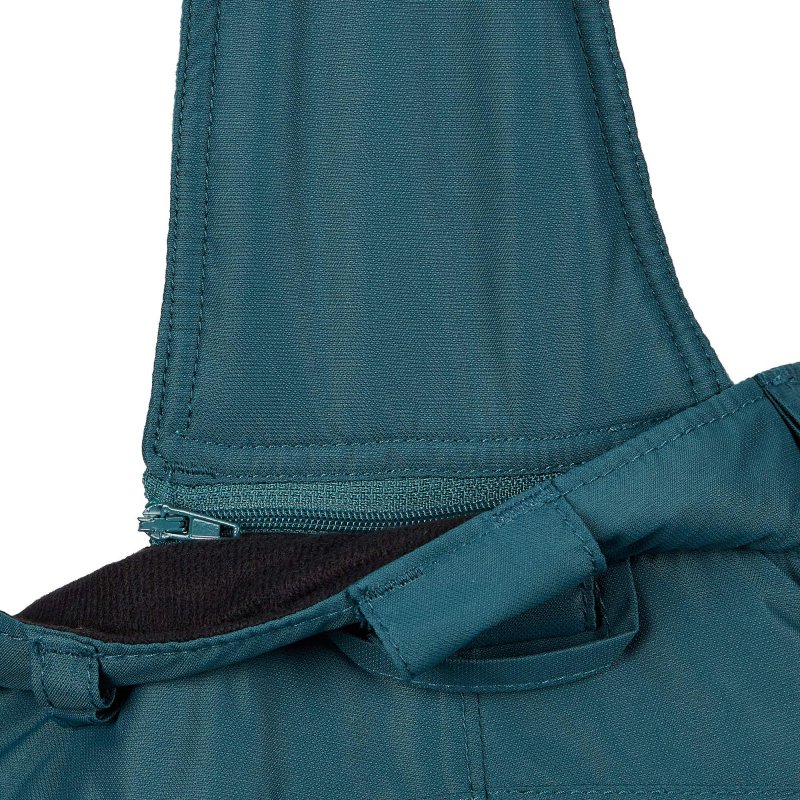 Das Latz-System mit einstellbaren Hosenträgern ermöglicht guten und sicheren Sitz. Es lässt sich bei Nichtbedarf aber auch einfach abnehmen. Hierfür ist der Bund mit Gürtelschlaufen versehen, sodass der Sitz optional mit einem Gürtel reguliert werden kann. An den Beinabschlüssen befindet sich ein Skikantenschutz. Und dank des integrierten Schneefangs rutscht bei der Abfahrt nichts Kaltes in die Beine hinein.