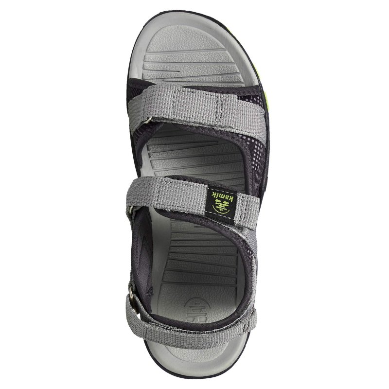 Absolut gelungen und schlicht und ergreifend praktisch. Mit drei regulierbaren Klettriemen, rutschhemmendem Fußbett und griffigem Sohlenprofil.