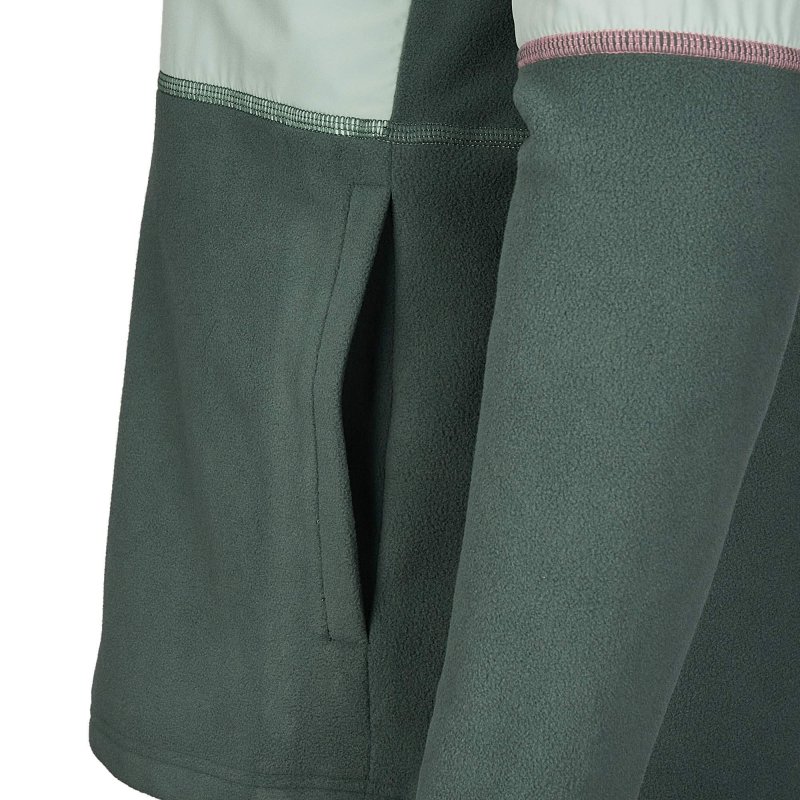 Gefertigt ist die Fleecejacke aus recyceltem Polyester. Die Kunstfaser hält dich angenehm warm und sorgt durch die feuchtigkeitsleitenden Eigenschaften dafür, dass du schnell wieder ein trockenes Tragegefühl genießt. Im Brustbereich trumpft die Fleecejacke mit ihrer wind- und wasserabweisenden DWR-Imprägnierung (PFC-frei) auf. Damit bietet sie dir auch exzellente Fähigkeiten, wenn du die Henriette Jacke bei mildem Wetter als Außenschicht trägst.