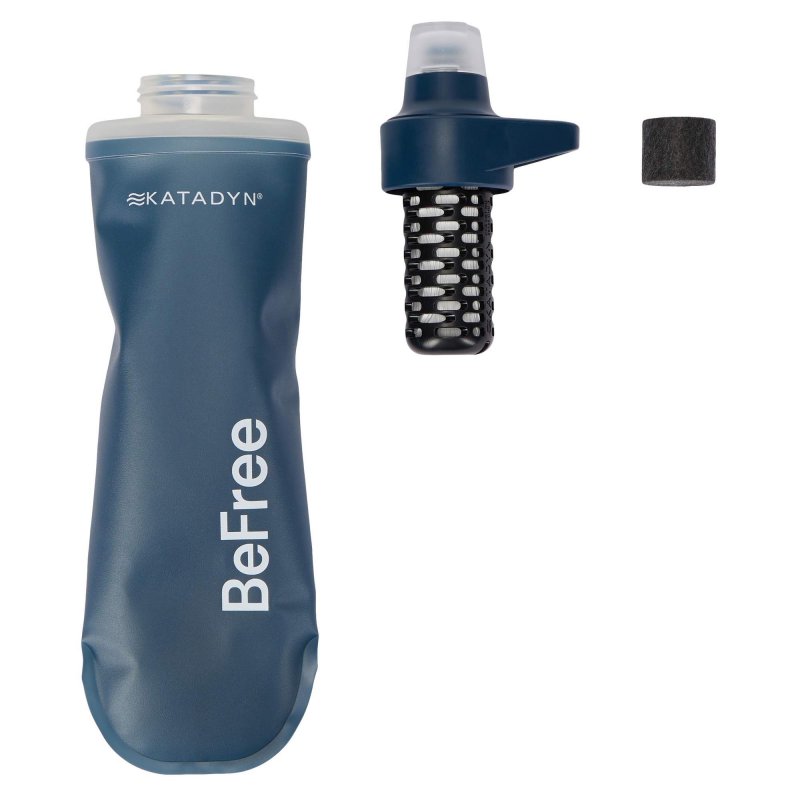 Der BeFree Filter AC kombiniert eine faltbare 0,5 l Trinkflasche mit Trinkverschluss und ein Wasserfiltersystem aus Hohlfaser und Aktivkohle zu einem System, das sich klein verpacken lässt.