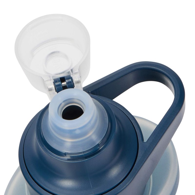 Das Mundstück ist mit einer Staubschutzkappe und verbessertem Scharnier versehen, das auch häufiges Öffnen und Schließen gut wegsteckt. Das Filterelement besteht aus einem Hohlfaserfilter, der Bakterien, Protozoen und Mikroplastik entfernt, sowie einem austauschbaren Aktivkohlefilter. Dieser verbessert Geschmack, Geruch und Trübheit des Wassers und reduziert Chlor.